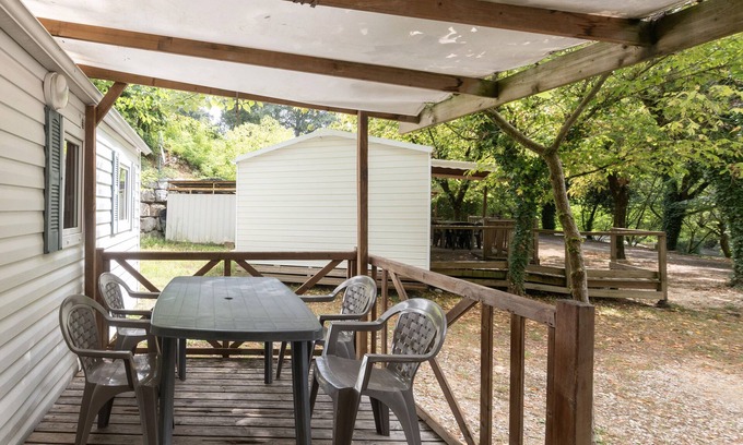 Caravan 'Midi - Mobil Home 4-6 Pers' with Private Terrace and Shared Garden | RV Rental in Vallon-Pont-d'Arc