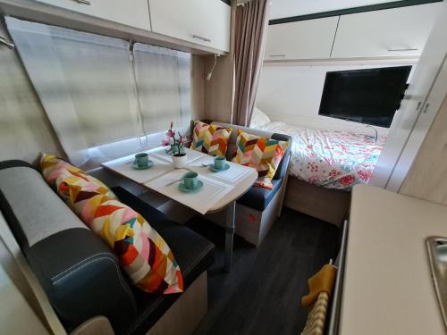Caravane tractable offers accommodations in Paliseul, 24 miles from Domain of the Caves of Han and 29 miles from Château Royal d'Ardenne. 10 miles from Château fort de Bouillon and 13 miles from Euro Space Center, the property features a garden and a terrace. The campground includes 1 bedroom, a living room, and 1 bathroom with free toiletries and a shower. Towels and bed linen are available in the campground. The property has an outdoor dining area.