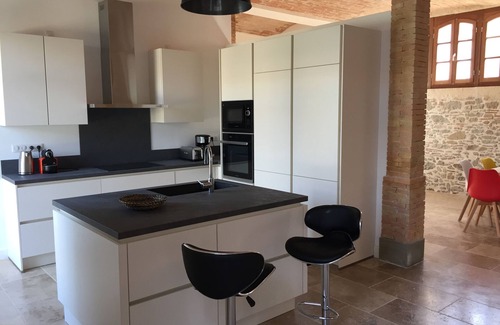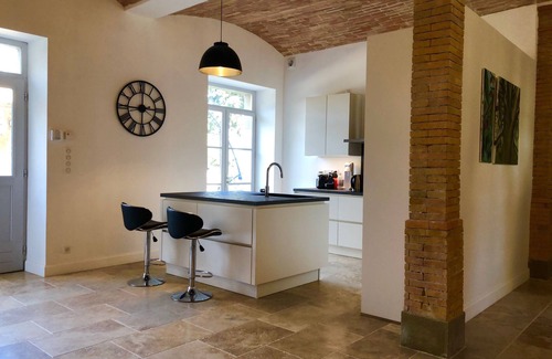 The house is very bright thanks to its 5 windows overlooking the garden, can accommodate one or more families. In RDC a splendid room of life with voutains of bricks and stone wall is opened on the garden and the swimming pool. Built-in kitchen with island, 2 dishwashers, 2 fridges, freezer compartment, 2 Nespresso coffee makers, juicer, toaster, coffee maker, soda stream, kettle, large induction hob. Dining table 16 seats, large leather corner sofa, bookcase and board games, will make good family moments.