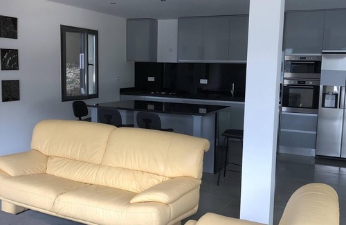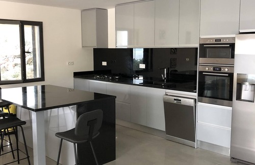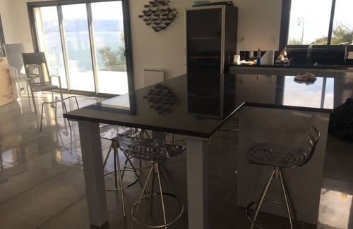 Splendid new villa with plunging view of the port and the open sea. This house is made up of 2 separate apartments, in order to best adapt to the number of holidaymakers. Each apartment has its American kitchen, open onto 1 large living room.