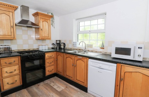 Amenities: Gas central heating and woodburning stove. Gas oven and hob, microwave, fridge/freezer, washing machine, dishwasher, 5 x TVs with Freeview, DVD, CD/radio, WiFi, selection of books, games and DVDs. Fuel, power and starter pack inc. in rent. Bed linen and towels inc. in rent. Travel cot and highchair available. Off-road parking for four cars. Secure bike storage. Enclosed decked patio with furniture and hot tub. Two well-behaved dogs welcome. Sorry, no smoking. Shop 1.9 miles, pub 1.8 miles. Note: Cottage is wheelchair-friendly. Note: Children (including those in wheelchairs) have shared use of purpose-built ramped tree house by prior arrangement with owner. Note: Owners have free-roaming ducks, dogs and cats, and can offer stabling for horses and use of ménage by prior arrangement. Note: Two open fishing lakes on owners' land for fun fishing. Note: The internal ground floor bedroom and en-suite have no natural light