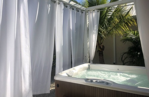 Your stay includes numerous amenities designed to enhance your experience, ensuring maximum comfort and relaxation. Each apartment is thoughtfully furnished, featuring luxurious bedding and a fully equipped kitchen, ideal for intimate dinners. Unwind in your private hot tub while donning spa bathrobes provided by the property, or enjoy a cozy movie night in the comfortable recliner. The BBQ area and picturesque garden invite you to indulge in culinary delights and seasonal tropical fruit harvesting, all crafted to immerse you in the essence of the Caribbean vibe.