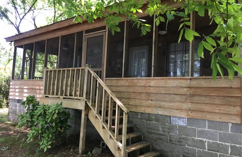 Now with WIFI ! Rustic cabin with modern amenities . Pets welcome . On Second Creek Lake off Pickwick Lake, Tennessee River. 840 County Road 78, Waterloo, AL. Sleeps 10. washer and dryer. Full kitchen. full bath . Directv. Two bedrooms downstairs; king size bed in one and queen in the other. Upstairs loft is one big room with two full beds, bunk beds, and a single bed. Cell phone service. On lake with pier. Nice shaded lot with gradual slope.Great pier and spot for boats. No Smoking-can smoke on screened in porch. Plenty room for parking for trucks pulling boats .