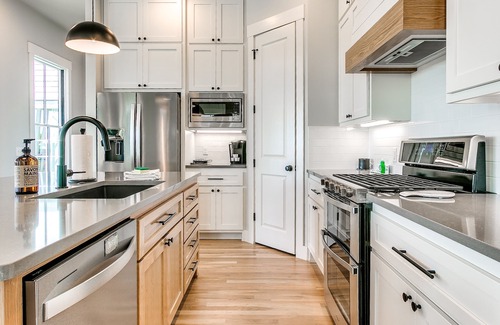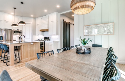 The amenities at Greenway Getaway are tailored for relaxation and celebration. Enjoy an elegant kitchen equipped with everything you need to prepare meals for your loved ones, while the open living and dining areas create a warm atmosphere for gatherings. With several sleeping arrangements featuring luxurious king beds and private bathrooms, every guest can relax in comfort. Indulge in evenings around the outdoor fire pit or gather on the balcony off the second master bedroom to soak in views of Carlton Landing. Every detail has been thoughtfully crafted, including a tankless hot water system ensuring endless warmth during your stay.