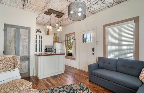 Firefly Cabana's first floor has a living room, kitchen, laundry room, one bedroom, and one bathroom. On the second floor you will find two additional bedrooms and another bathroom. The front porch overlooks the micro-neighborhood green space and the community fire pit.