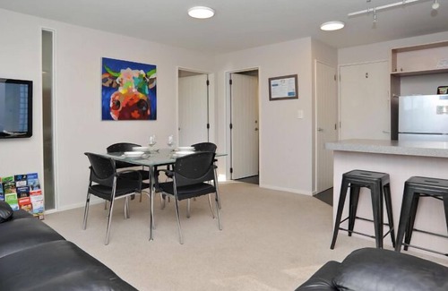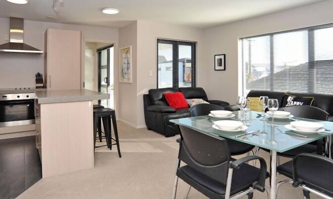 Located in the heart of the city! Minutes walk to the city centre, Victoria St, Merivale village and Hagley Park from this modern, classy apartment. Perfect for a weekend getaway or if you're in Christchurch for work. Enjoy contemporary open plan living, a smart kitchen, comfortable accommodation with on-site parking and security gate entry. Excellent shopping, restaurants, cafes, galleries and other attractions close by. – 2 bedrooms – 1 bathroom – Rice cooker – Apartment access is via stairs.