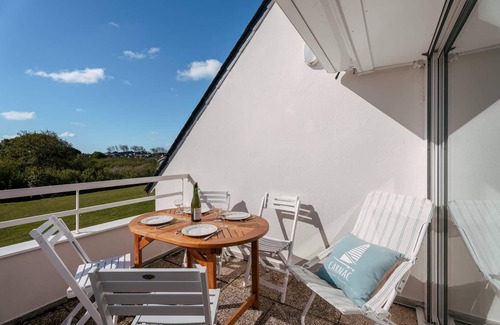 1km from the Beach of Légenèse, Thalassotherapy and the village of Carnac, splendid 3-room split-level apartment (approx. 57m²) for 4 people, located in a quiet residential complex with heated collective swimming pool open from mid-June to mid- September, Residence "LE DOMAINE DES TADORNES" (Building E, 1st floor, door 40).