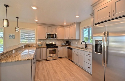 This Ocracoke Island vacation home is named for its soundside breezes and incredible views from its decks. Relax in the *hot tub. Enjoy this welcoming and tastefully furnished and decorated waterfront home featuring cathedral ceilings and an open floorplan. For boaters, this house boasts over 75' of dock with a covered fish cleaning bench on a canal with easy access to Pamlico Sound. 4 Bedrooms, 3.5 Baths: 3 bedrooms with King. 1 with Queen and Day Bed. Amenities include central air conditioning/heat, ceiling fans, complimentary wireless internet access, cable TVs, DVD players. Washer and dryer. Sheets and towels are provided. Beds are made for your arrival. The exterior offers a *hot tub, private boat dockage, bulkhead, decks, hot/cold outdoor shower and park style charcoal grill. Covered parking. Pet Friendly - Dogs Only. Limit 1 Dog. No Smoking. No Partial Week Stays. *2023 Hot Tub Season - Open April 2 - November 18, 2023. Property Layout: First Floor: Open floor plan with kitchen and dining area, living area with TV/DVD. Primary Bedroom with King bed, TV, and Primary Bath with tiled shower. Hallway Half Bath. Laundry Room. Second Floor: Master Bedroom with King bed and Private Bath with tiled shower. Bedroom with King bed. Bedroom with one Queen and a Day Bed (sleeps one person), TV/DVD. Hallway Bath with tub/shower.