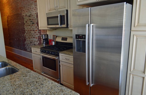 For your convenience, we've included extra amenities such as trash bags, dishwasher tablets, Tide Pods, and fabric softener sheets under the kitchen sink, ensuring a hassle-free stay. An elevator awaits within the building, but don't miss the chance to ascend the original grand staircase at the Julia Street entrance for a touch of historic elegance.