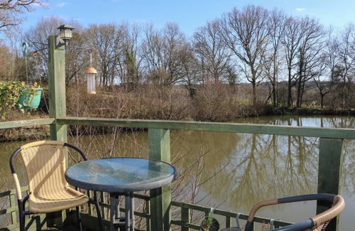 Amenities: Gas hob, microwave, fridge/freezer, coffee percolator, kettle, mini oven/toaster, iron. Smart TV, WiFi. Fuel, power, and starter pack for woodburning stove inc. in rent. Bed linen inc in rent. Private parking for 2 cars. Enclosed wraparound decking with furniture, barbecue, and lawn space with fire-pit. Two well-behaved pets welcome. Sorry, no smoking. Shop 2.8 miles, pub 1.7 miles, lake 0.1 miles. Note: Steps into hut. Note: Own private heated shower/toilet a short walk. Note: flushing Portaloo attached to hut. Note: Guests can purchase fishing tickets to the lakes. Note: Sorry, no children allowed. Note: Welcome pack Inc milk juice & condiments provided by owner. Note: Access to washing machine in nearby utility hut. Note: On-site EV charging available. Note: Note: £10 per pet fee applies. Note: Wild-swimming lake. Note: Dogs must be kept on a lead except in designated field areas (shown on arrival).