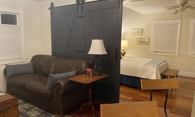 Welcome to Camellia Cottages. We invite you to stay in our renovated Carriage House located in the residential neighborhood of historic Summerville. It's inviting, clean, and private for special getaways or business travel. With your own entrance, you'll find a delightful living area with a full size kitchen, two separate bedrooms, extra large closets, and a laundry room. The kitchen is fully stocked with cookware and utensils. Both bedrooms feature queen beds, and the living space includes a queen sleeper sofa. A dining table with seating for six along with adjustable stools at the kitchen counter provide for a total seating of 8. Guests have access to private parking, an outdoor grill and seating area, along with a park/playground next door for use during your extended stay.