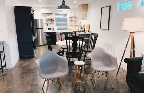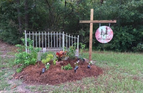Escape from the city to Three Pines Farm. The Carriage House is a cozy guest house located in the Pineywoods of East Texas. This is the downstairs sister to our Pink Door Guest Haus. Along with great views, we have a country feel, but we are only 6 miles from town. We are located near Lufkin, Nacogdoches and Lake Sam Rayburn. Have a cup of coffee or an evening cocktail in the rockers on the pier. Our ducks and pond residents will charm you. Relax and enjoy all this area has to offer.