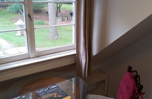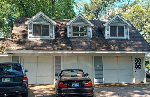 The Carriage House Loft Apartment, perched above a 4-car garage, secluded setting on 6 acres of our family homestead property. Towering old growth oak trees, private deck, peaceful and pleasant views, yet minutes from everything Toledo and the Maumee Valley have to offer.