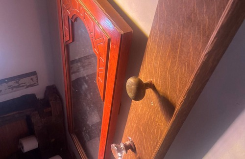 Enjoy the spacious grassy yard & relax under the huge rain shower or have a soak in the old clawfoot tub. WiFi, small washer/dryer, & fully equipped tiny kitchen w/ stainless appliances & countertop made from original owner Lowry Overacre’s plumbing workbench make the space a comfortable, efficient, & unforgettable home away from home. The hand-crafted queen bed & custom-made cherry daybed provide flexible sleeping options, while special touches like the restored stained glass windows & historic star bricks on the bathroom floor add real Lynchburg history to everything you touch.