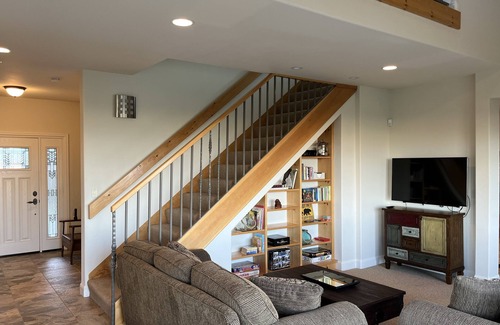 Sitting on the California/Nevada border, overlooking the Carson Valley, what's not to love about those views! Only 31 minutes to Kirkwood if you like to ski or board. Or, escape the crowded hotels, and we are 31 minutes to South Lake Tahoe. Spectacular valley and mountain views from every window! If you are into off road sports, Johnson Lane is 15 minutes away! Spacious rooms and beds for thirteen, so bring the whole family plus some friends! Just under 3000 square feet to spread out and enjoy your stay! A fully equipped kitchen, complete with trash compactor, microwave, gas range, and dishwasher. A large dining room with seating for all! A designated work space in one of the bedrooms, an en-suite upstairs in the primary, and a junior primary en-suite downstairs as well. Enjoy the back deck for some stargazing or chatting around the propane firepit!