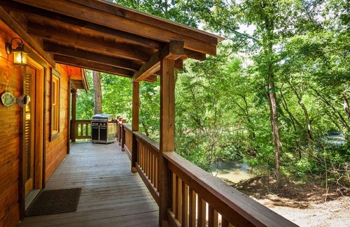 This beautiful and luxurious river front cabin is the perfect place for a romantic rendezvous, honeymoon bungalow or the small family looking for some quality time together in nature. Cartecay Fever sits on the banks of the well known Cartecay River, known for it's fishing, tubing, rafting, canoeing and kayaking. Having white water rapids on several parts of the river adds excitement to the whole river experience. Relax on the spacious back porch while taking in the sights and sounds of the ever changing river. Watch as others come by on their water craft of choice or slip your shoes off and experience the cool mountain water and then enjoy sitting on one of the huge river rocks right in your own backyard.