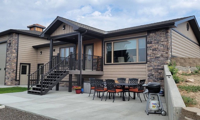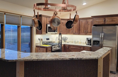 Two bedroom home with sleeper sofa in the Living Room. This is a brand new private mountain home close to town. This home is located at the base of Cedar Mountain, with hiking available right outside your front door! For the experienced hiker, a hike to "The Crater" is a must! The views will provide you with awe inspiring photo opportunities. Don't be surprised if local wildlife stop by for an occasional visit. Come enjoy this out of town, yet close to town, relaxing home. (Note: garage is not available to renters)