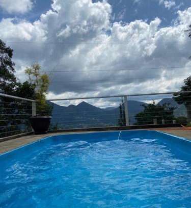 Casa aconchegante com linda vista a 5 min do centro offers accommodations in Nova Friburgo, 3 miles from Nova Friburgo Cable Car and 4 miles from Catarina's Stone. 3.5 miles from Eduardo Guinle Stadium – Friburguense A.C. And 2.5 miles from Sesi, the property features a garden and barbecue facilities. The vacation home offers a pool with a view with a fence and free Wifi. Offering a balcony and mountain views, the vacation home includes 2 bedrooms, a living room, satellite flat-screen TV, an equipped kitchen, and 2 bathrooms with a shower. Towels and bed linen are offered in the vacation home. The property has an outdoor dining area. Guests can also relax in the shared lounge area. Poço Feio Well is 20 miles from the vacation home.
