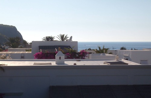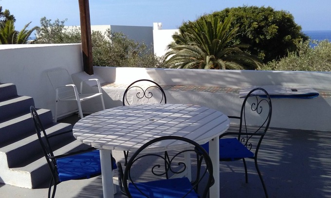 Casa Ada located near the Grotta di Eolo is a villa with a large colonnaded patio garden, surrounded by greenery of Piscità with a terrace on the first floor and a solarium with a view of Strombolicchio and the sea, a stone's throw from the beach of the Grotta di Eolo and close to the long beach, from the terrace you can also see the Stromboli Volcano and the Church of San Bartolo; nearby there is a supermarket and a bar with restaurant, where you can have lunch at home, you pay € 25.00 per couple and € 15.00 single, but the guest is allowed to bring it from home.