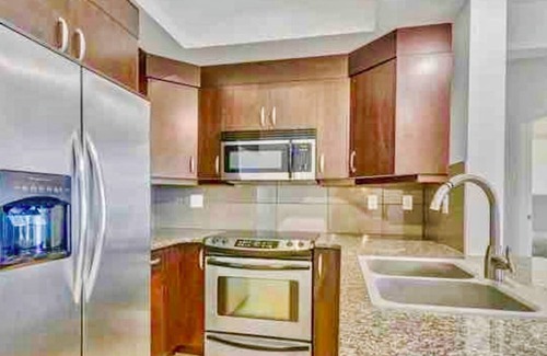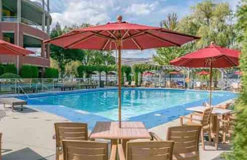 Modern very well stocked kitchen with bar seating. Large comfy king bedrooms with room for a crib or pack n play. Bright, very clean and uncluttered, there is a pullout queen in the living room. Both bathrooms feature full shower and tubs. The large deck views the lake, pool and gardens and is outfitted with cozy lounge seating and BBQ area. In suite laundry and storage, parking for two plus many complex amenities make this everything you and your guests need to have an amazing vacation. I am an experienced air BnB host with two other nearby properties with the highest rankings in the North Okanagan! We take respectful and amazing guests not looking to party or disturb others within the property.