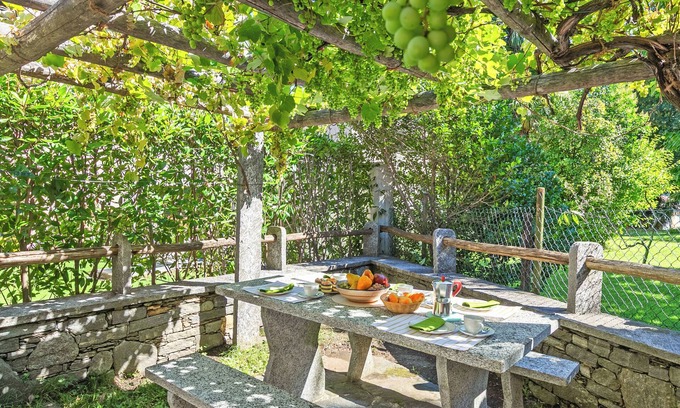 Outdoors, a stone dining table with benches offers a lovely spot for al fresco aperitifs or relaxed dinners under the open sky. Just 2 km from Ascona and 3 km from Locarno, Casa Ana 1 is well connected by public transport, making it a great base for exploring the region.