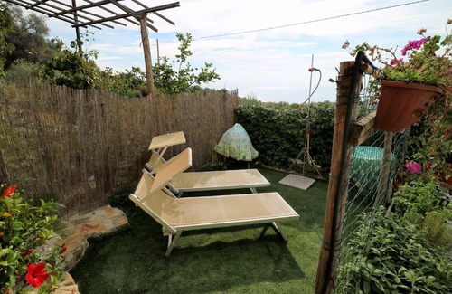 35 sqm ground floor studio apartment with independent access. The house is very quiet and cozy, no smoking, no pets. Equipment: with double sofa bed in the living area, plus a bunk bed in a separate room separated by a curtain, including sheets. Towels €. 3.00 per person. with shower, fridge, electric oven, hair dryer, 4 gas burners, washing machine, iron and ironing board, American coffee maker, toaster, self-heating gas consumption € 5,00 m. c., satellite TV,. Ceilings, natural stone (tufa) very romantic sea-view terrace table 4 chairs and two sun beds, umbrellas, outdoor shower, barbecue. Parking near. Attention to detail, wooden furniture, suitable for couples or up to 4 people. A 3 km is S: Stefano the sea, very nice village on the sea with sandy beaches and cliffs mail database stores, and even paid with loungers and parasols. A 30 km long cycle path. Please respect the apartment and leave it clean as you found it. Deposit € 150.00. Wifi € 10,00 per week. We do not accept children under 6 years.