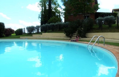 This sweet independent house was originally a barn. Made of bricks and completely restored the house is set in an enviable position on top of a hill with fabulous views towards Siena. Casa Aurora has been divided into two apartments, each with private entrance. Both apartments are charming with a rustic friendly atmosphere. The two apartments are rented always together for 6 people maximum. Barbecue and laundry available for the guests. In the garden, there is a fenced round swimming pool (9,20 m diameter; 1.50m deep, seasonal opening), for the guests and sometimes used by the owners living nearby. The friendly owner is horse rider and near the house there is the fence where the its horse lives. Casa Aurora is very well placed for visiting Siena and its beautiful landscape.