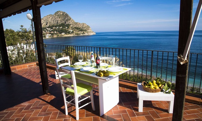 Inside a villa by the sea there is an independent apartment with an exclusive terrace where you can spend hours in absolute relaxation, the terrace allows you to have a view over the whole gulf admiring the beauty of nature. From the house through a staircase that crosses a garden you get to a characteristic beach of Sicily, with a clear and wonderful sea. Small pebbles make the beach suitable for children too. In addition, the beach is closed to the public from 7.30 pm to 7.30 am. The apartment has an entrance into the kitchen, living room with kitchenette, dining area, sofa bed, bedroom and bathroom with shower.
