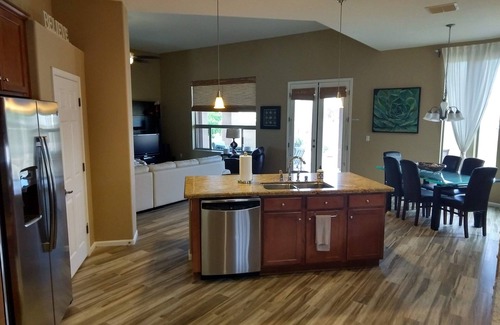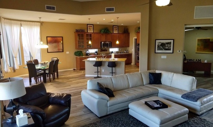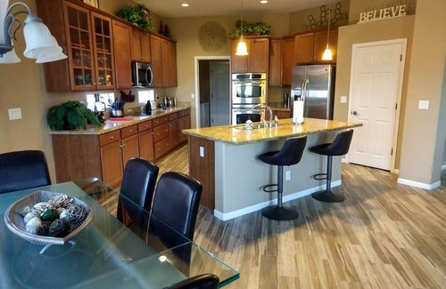 Immaculately maintained semi-custom home situated on a corner lot in very quiet neighborhood of Rancho Vistoso Community located in Oro Valley, AZ. Enjoy your golf game among the many golf courses located in Oro Valley, Marana, and Tucson. 10 minute drive to The Gallery Golf Club at the Ritz Carlton in Dove Mountain. This vacation home features a huge covered patio for you to enjoy your morning coffee/tea relaxing on the sectional couch and evenings watching the beautiful Arizona Sunsets with the Tortilita mountains in the backdrop. Home is located within a 5 minute walk to Hohokam park which includes lighted tennis and basketball courts, playground, and dog park. Enjoy walking or biking along 6 miles of Vistoso Trails Nature Preserve path. Plan a day hiking to Romero Pools at Catalina State park just 5 miles from the house. Mountain biking trails in Oro Valley include Rail X, 50 year trail and Honeybee Canyon. Hiking also found nearby in Honeybee Canyon and Big wash trailhead just minutes away.