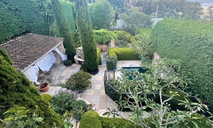 this mediterranean inspired house is set over two separate levels, with a large balcony overlooking Terrigal beach. The house has complete privacy from the street and surrounding neighbours. The backyard opens up to a beautifully designed garden set over 3 levels, with a cabana, and a vine-covered pergola, a plunge pool with massage nets, and a pizza oven.