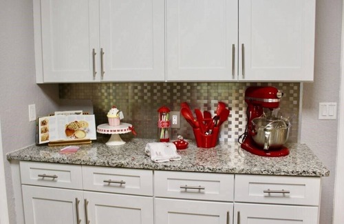 Casa Bella offers new fixtures and equipment . A double car garage . 3 King size master bedrooms with their own full bathrooms & one bedroom with two twin beds next to the full bathroom at the hallway plus a movie room equipped with a sofa bed. The huge kitchen area is ideal for preparing a perfect meal or just to relax in the kitchen area having breakfast overlooking the pool area. Dog friendly , no cats . Pet fee required.