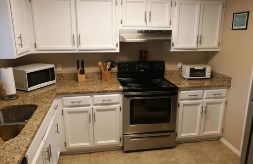 Four to six guests can stay in comfort in this updated home with a well-stocked kitchen (granite countertops and updated appliances) , 2 large downstairs bedrooms (1 king, 1 queen bed), 1 1/2 bathrooms, washer/dryer. Living room boasts a 60" Smart TV with cable tv, Blu-Ray player and WiFi (stream your Netflix, Hulu, Prime, etc). Ample DVDs in the unit for rainy days or quiet nights.