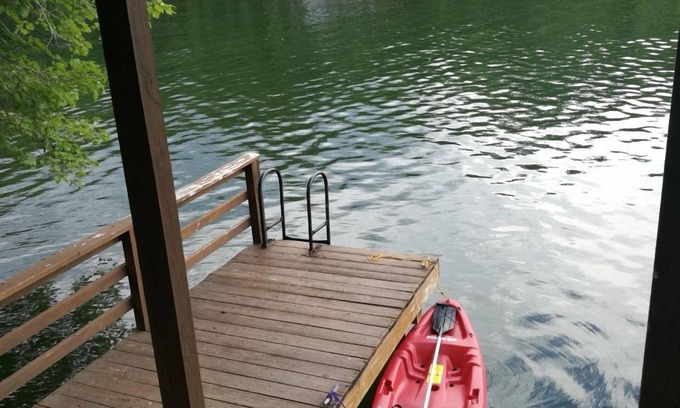 - Kayaks and Boat Dock Lakeside Hot Springs Retreat