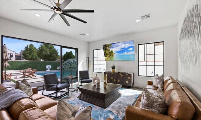 Located just minutes away from Sand Hollow State Park, where you can enjoy breathtaking outdoor adventures, and only a short drive from the majestic Zion National Park, this villa places you in an idyllic setting for both relaxation and recreation. The neighborhood itself boasts resort-style amenities including pickleball courts, a gym, and inviting community pools. With ample parking available and easy access to local attractions, Casa Blanca luxury Villa Private pool sleeps 30! offers everything you need for a seamless wedding experience in a picturesque destination.