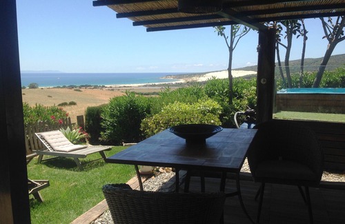 Wooden House (for 2 people), 35m2 with 25 m2 porch with private garden and pool. Incredible views of the beach of Valdevaqueros and the dune of Punta Paloma.