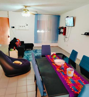 Providing a garden, Casa Bravo Celaya provides accommodations in Celaya. This property offers access to a balcony, free private parking, and free Wifi. Guests can use a terrace. This vacation home includes 3 bedrooms, 2 living rooms and a flat-screen TV, an equipped kitchen with a dining area, and 2 bathrooms with a shower and a washing machine. Towels and bed linen are provided in the vacation home. For added privacy, the accommodation has a private entrance and is protected by full-day security. Sightseeing tours are available nearby. Autonome University of Querétaro is 30 miles from the vacation home, while La Casona is 31 miles away. Querétaro International Airport is 45 miles from the property.