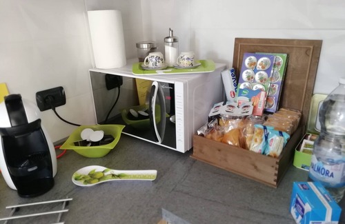 For breakfast you will have coffee in pods and for moka, tea, biscuits, jam, brioches, all packaged products.