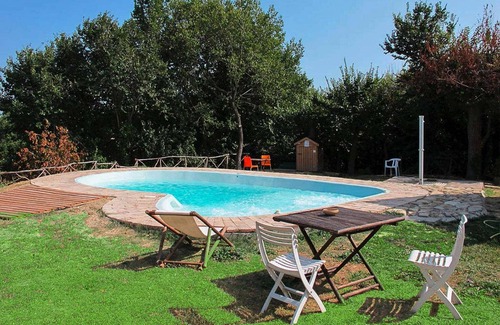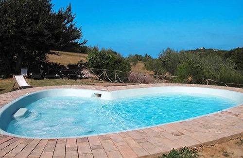 In the blooming nature of the San Bartolo Nature Park, on the rolling hills with olive groves and above the blue sea of the Adriatic coast, you will find the lovingly restored 17th-century farm. The architectural style of the individual apartments corresponds to that of an exclusive and at the same time historic residential building. The quiet natural location invites you to relax and slow down. The apartments on the ground floor or upper floor are rustically and comfortably furnished and have a view of the garden and some also have a fireplace. There are fly screens on all windows. The small town of Vallugola is located between Rimini and Pesaro on the natural bay of Baia di Vallugola. Attractions are the marina and the beautiful pebble beach on the crystal clear Adriatic Sea. Just six kilometers away is the family-friendly seaside resort of Gabicce Mare, known for its charming old town with shops and workshops. Your holiday complex offers: 1 building with 8 residential units Reception, WiFi hotspot, garden, and parking Communal outdoor pool (22 sqm, open mid-May to mid-September) with hydromassage, outdoor shower, loungers, and parasols Nearby activities: Gabicce Mare features a sandy beach and various water sports. Cultural excursions include the Roman ruins of Colombarone, the medieval castle in Fiorenzuola di Focara, and the fortresses of Gradara and San Leo. A visit to Rimini, with its ancient sights and Italy's largest miniature park, is also recommended.