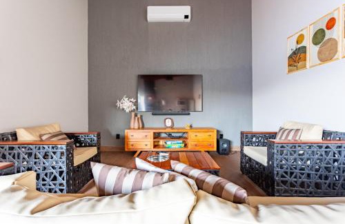 Casa c/ Piscina e 04 Suítes – 5 Min. Do Centro is a recently renovated vacation home in Pirenópolis where guests can make the most of its outdoor swimming pool, garden, and shared lounge. The vacation home, set in a building dating from 2024, is 2.3 miles from Cavalhadas Museum and 2.6 miles from Nossa Senhora do Rosario Church. There's a sun terrace and guests can use free Wifi and free private parking. Offering direct access to a patio with pool views, the spacious air-conditioned vacation home consists of 4 bedrooms. Featuring a balcony with mountain views, this vacation home also comes with a satellite flat-screen TV, a well-equipped kitchen with an oven, a microwave, and a toaster, as well as 5 bathrooms with a bidet and a hair dryer. There's also a seating area and a fireplace. A mini-market is available at the vacation home. You can play table tennis at the vacation home. Guests can also warm up near the outdoor fireplace after a day of bike tours. Bonfim Church is 3 miles from Casa c/ Piscina e 04 Suítes – 5 Min. Do Centro, while Pirenópolis Bus Station is 2.4 miles from the property. Santa Genoveva/Goiania Airport is 69 miles away.