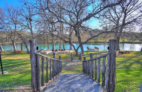 Casa Blanca is located between Ingram and Hunt, along the Guadalupe River, on 11 acres with multiple rentals. Guests have free access to 330' of Cypress-lined riverfront, which includes a deck extending over the river, rope swing, rock patio, and spacious lawn area. Recreational equipment and numerous outdoor meeting areas are available throughout the property. Free parking and Wi-Fi for all guests.