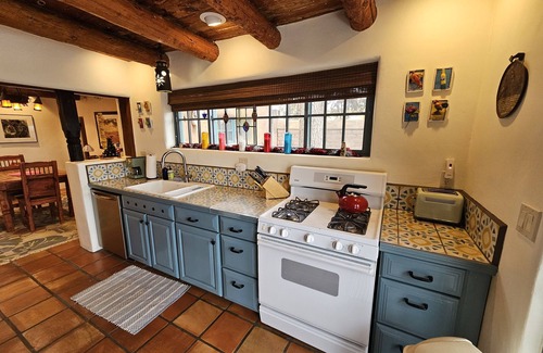 The home features a beautiful King bedroom, and a 2nd bedroom containing a queen size bed, a mock kiva fireplace and historic charm.