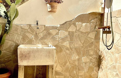 The rooms are tastefully furnished, blending modern design with Apulian elements, such as vaulted ceilings and Lecce stone. On cooler evenings, you can sit comfortably in front of the olive-wood-burning fireplace. There is a very well-equipped kitchen where you can easily prepare your meals.