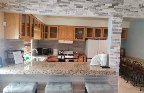 Inside, you'll find cozy, air-conditioned bedrooms equipped with cable TVs and Wi-Fi for your convenience. Plus, there's ample parking for up to 4 cars. Located just 10 minutes by car from the beach and the vibrant Malecón, you'll have easy access to everything you need for a fantastic getaway.