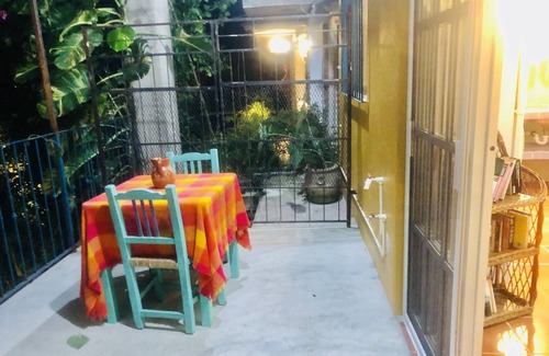 It’s a bright breezy little apartment with balcony overlooking the garden and river, private back patio, fully stocked kitchen, bottled water and dispenser, condiments and coffee provided, private bathroom, queen pillow-top bed and a pull-out futon sofa. Bright and quaintly decorated with Mexican artifacts and art, Casa Periquitos easily feels like a tiny home away from home. The patios are breezy, beautiful and the perfect place to sit and listen to the river flow past, work on your computer, barbecue or enjoy a class of wine. We are easily accessible, close to stores, the beach, the hikes to other beaches. It is more suited to 2 people but can accommodate 2 adults and 2 kids.