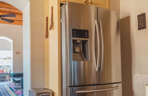 Casa Chamisa is the main house on a large gated corner lot. We lovingly call it 'The Compound.' Next door to the main house is a another adobe casita where a family member lives (she's an artist and teacher). When in town, the owner lives in a separate unit located on the property and is available for any questions or concerns via phone or text (or in person), but will give you and your guests space and privacy you during your stay and will enter the house only if/when requested.