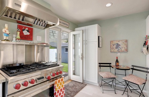 The house is full of natural light and has wood floors and tile throughout. There are two bedrooms with queen beds and big closets and two large bathrooms with everything you will need to make your stay comfortable. One of the bathrooms serves as the laundry center with a Bosch washer and dryer for your convenience.