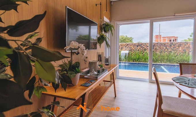 Com 3 quartos espaçosos, esta casa acomoda até 9 pessoas com conforto, oferecendo a todos um espaço próprio para descanso e relaxamento. E para os momentos de lazer, a piscina e a churrasqueira privativas tornam-se o cenário ideal para tardes ensolaradas e noites agradáveis sob as estrelas. Vale destacar que toda a parte de lazer está na casa, em área privativa. A parte comum do condomínio não fica disponível ao longo da reserva para os hóspedes.