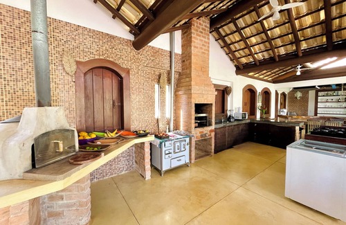 The house is located in the gated community Outeiro das Brisas, with great security, charm and comfort. Large living area integrated with: living, dining, kitchen, barbecue, pizza oven, wood oven, bar with ice machine and beer fridge, kiosk.