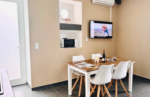 This 1-bedroom, 1-bathroom rental features a living room and air conditioning. Enjoy the WiFi and TV. Prepare a home-cooked meal in the kitchen, complete with an oven and a refrigerator, as well as a microwave, cookware, and a toaster. And you won't have to pack extra clothes, because you'll also have access to laundry facilities. Other amenities include bed sheets and a dining table.
