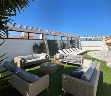 1.6 miles from Foz do Lizandro Beach in Carvoeira, Casa das Rosas offers accommodations with access to a fitness center. This property offers a private pool, free Wifi, and free private parking. The property offers bike rental and features a garden and children's playground. Leading onto a balcony with mountain views, the spacious air-conditioned villa consists of 4 bedrooms. Offering a terrace with sea views, this villa also has a satellite flat-screen TV, a well-equipped kitchen with a dishwasher, an oven, and a microwave, as well as 6 bathrooms with a walk-in shower and a hair dryer. There's also a seating area and a fireplace. There is an on-site bar. The villa has a picnic area where you can spend the day outdoors. Sintra National Palace is 12 miles from the villa, while Quinta da Regaleira is 13 miles away. Cascais Municipal Airport is 18 miles from the property.